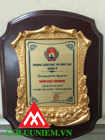 hình ảnh thực tế bảng cảm ơn ăn mòn hình hoa mai (Phòng giáo dục quận 9 ghi nhận đóng góp của Nhóm nhảy CROWBAR là nhà tài trợ cho chương trình Vũ điệu mùa xuân 2016)