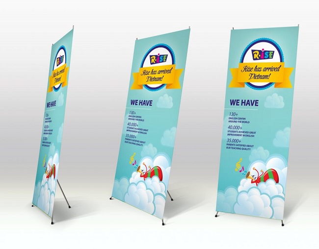- Băng rôn kéo lên hay còn được gọi là phướn được sử dụng trong các hội chợ và sự kiện ngoài trời nhờ khả năng dễ dàng lắp đặt, di chuyển. Đặc điểm này tạo ra sự tiện lợi cho các doanh nghiệp trong hoạt động quảng bá sản phẩm, dịch vụ và thương hiệu.