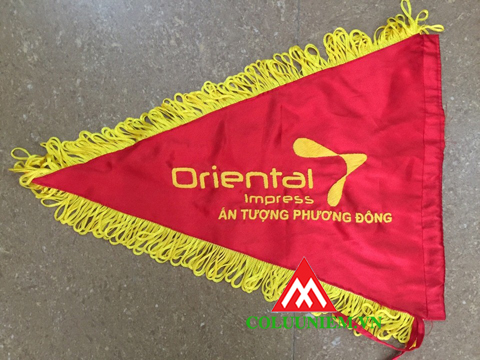 giá cả còn phụ thuộc vào thêu hay in, số lương, logo , yêu cầu .... In cờ trên vải phi bóng, silk, lụa