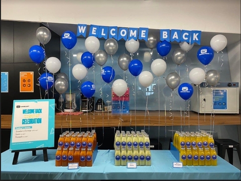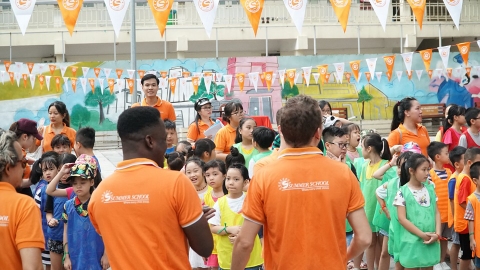 cờ dây màu cam, trắng xen kẽ, in logo cho #summerschool "sự kiện ngoại khóa ngày chủ nhật