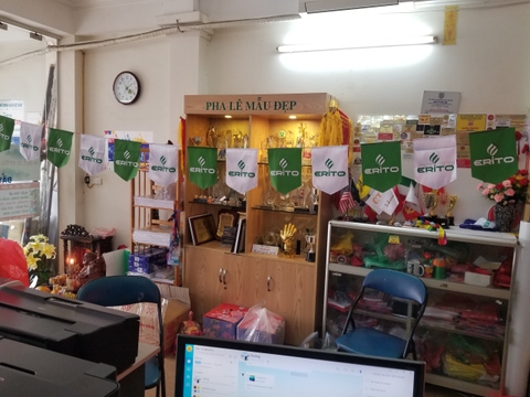 thương hiệu máy lạnh Erito đến từ Nhật, cờ xanh sẫm và cờ trắng xen kẽ, in logo, cờ bầu