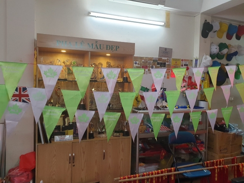 cờ in từng chữ, treo trên bóng bay