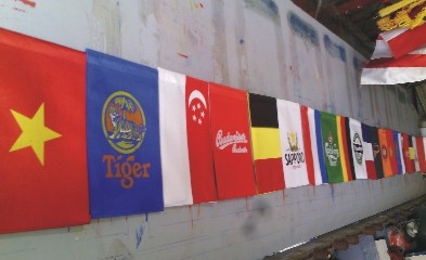 cờ dây các nước, các loại bia treo tại hệ thống nhà hàng Vuvuzela