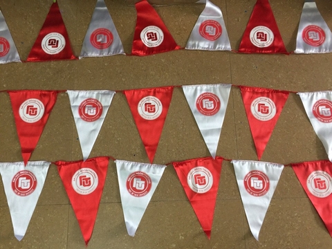cờ dây đỏ trắng in logo ĐH Ngoại thương