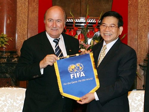 cờ lưu niệm FiFA (chủ tich FIFA Joseph Blatter tặng Chủ tịch nước Nguyễn Minh Triết - ngày 1/8/2008 tại Phủ Chủ tịch)