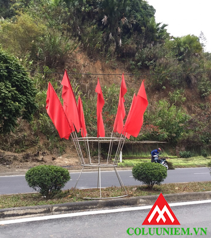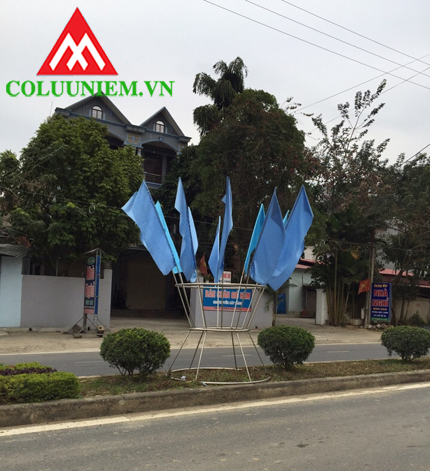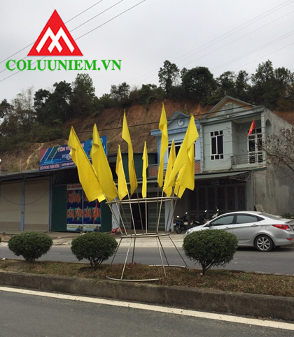 cờ chuối màu vàng, có làm hẳn giá inox đỡ dưới, vừa chắc khỏe, cờ bay trông rất đẹp, sang trọng