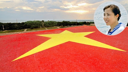 Cờ gốm trên nóc nhà hội trường đảo Trường Sa Lớn, và tác giả: họa sĩ Nguyễn Thu Thủy