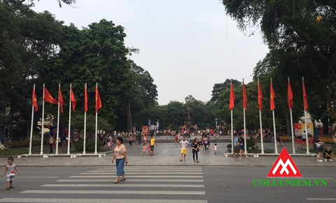 cờ Đảng, cờ Việt Nam treo tại tượng đài Lý Thái Tổ- Hồ Hoàn Kiếm