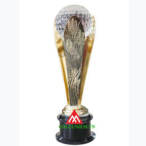 Cúp nghệ thuật trái banh golf , chất liệu đồng ngoại nhập, cúp nghệ thuật trái banh Golf kết hợp với những cánh hoa mỏng manh nhưng rất cá tính màu vàng bao bọc bên ngoài, nền đế pha lê đen kiểu cách, làm tôn lên nét đẹp kiêu sa, sang trọng của sản phẩm nghệ thuật này.