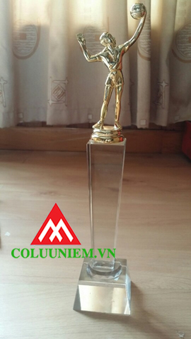 Cúp hình người đập bóng chuyền độc đáo, tư thế đập bóng đẹp mắt. Quả bóng giơ lên cao, tay chuẩn bị đập