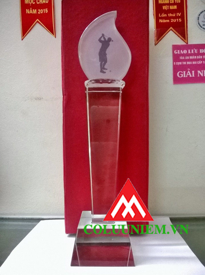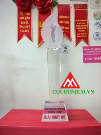 Cúp pha lê ngọn lửa đánh Golf MP- 025, có hình người đánh golf in chìm bên trên, ngọn lửa cách điệu tuyệt đẹp, sinh động. Thân cúp cao vừa phải, đủ để thể hiện sự tinh tế, vừa tầm tay, ưa nhìn