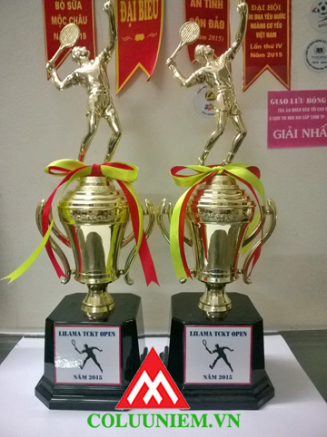 Cúp tennis M001-T, có hình người đánh tennis ở trên rất độc đáo, đẹp và lạ, có nhiều size để chọn lựa. Đế nhựa bền đẹp, in khắc nội dung, logo theo yêu cầu, hàng có sãn lấy ngay, nhanh