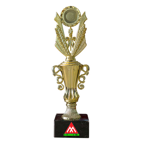 Cúp vinh danh mạ vàng độc đáo. Sản phẩm được thiết kế theo hình dáng cúp cao, có sự bo xéo sành điệu ở phần thân làm cho chiếc cúp trở nên quý phái hơn. Hai quai được trang trí kiểu xoắn ốc đẹp mắt. Phần đỉnh cúp gắn biểu tượng hình chữ V và huy chương vàng, vòng nguyệt quế, tượng trưng cho sự chiến thắng vinh quang. Đây là quà tặng thích hợp để tôn vinh, lưu niệm trong các buổi giao lưu, thi đấu, các giải phong trào…