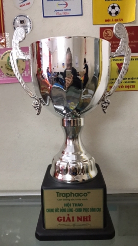 Cúp kim loại mạ vàng, thân trơn nhẵn. Với thiết kế hai quai là hai nàng tiên cá từ trên xuống ôm lấy thân cúp. Phần chân cúp được bẻ cong quyến rũ, đẹp tự nhiên trên nền đế gỗ MDF sang trọng.