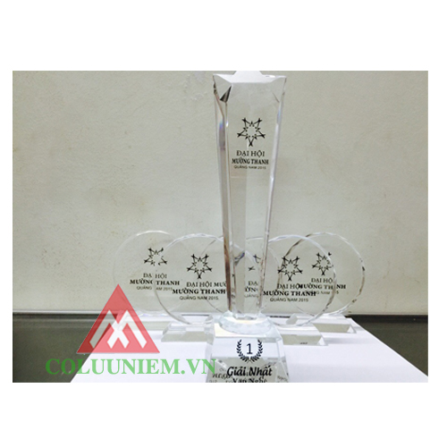Cúp pha lê ngôi sao dành cho cuộc thi văn nghệ, kỷ niệm chương dành cho khách tham dự đại hội