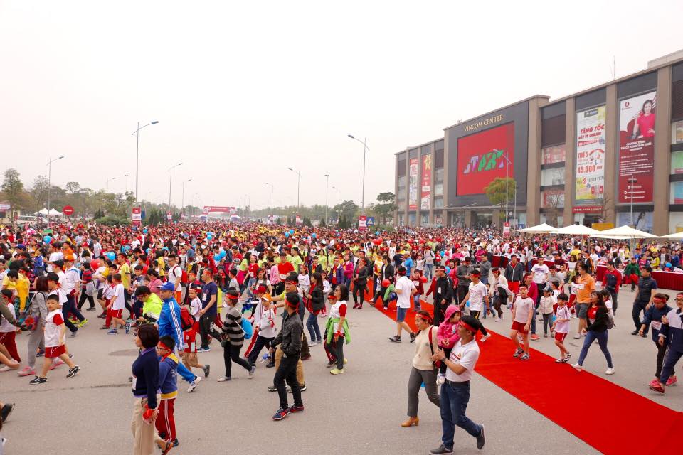 Hàng ngàn " Runner" di chuyển đến khu vực xuất phát để bắt đầu 2 cự ly chạy 2,5 và 5 km