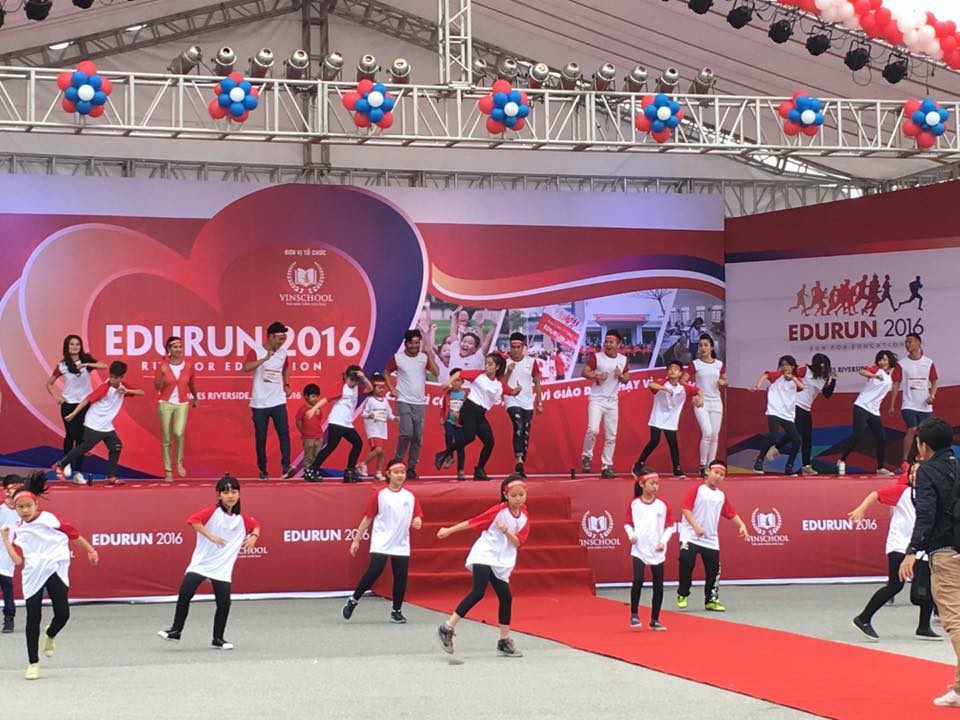Màn Khởi động " tưng hêt cả bừng" của Gv và các em học sinh Vinchool cùng các Nghệ sĩ Đại sứ Edurun 2016