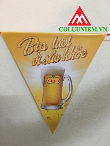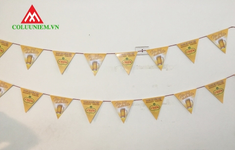 Cờ dây treo quảng cáo, hoặc dùng để vẫy, in trên giấy có nhiều ưu điểm, cho hình ảnh, màu sắc đẹp, trung thực hơn khi in trên chất liệu PP, decal.