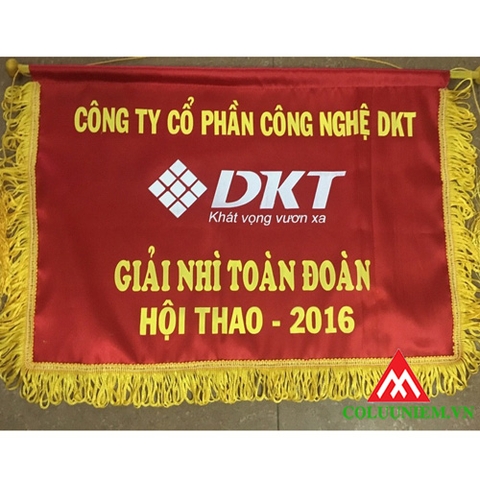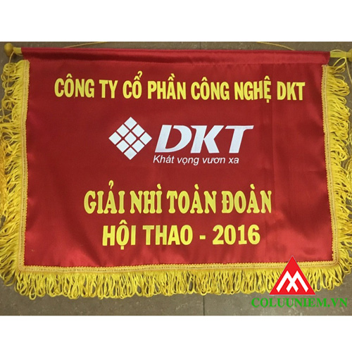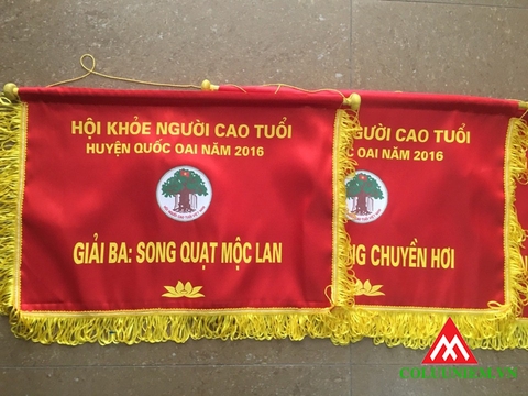 Cờ in logo của khách màu trắng, cho nổi bật trên nền đỏ