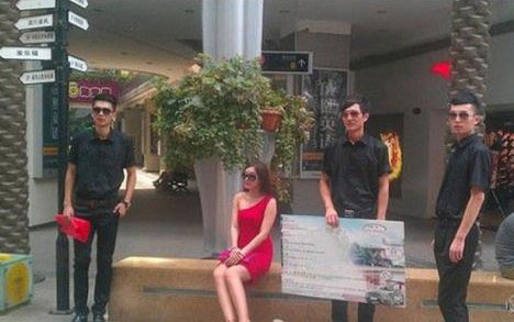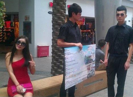 10h sáng 19/8 vừa qua, một cô gái với váy đỏ duyên dáng cùng các vệ sĩ cầm băng rôn và một tấm bảng đã đứng tại quảng trường Trung tâm Thương mại Vũ Hán (Trung Quốc) để tìm một người chồng phù hợp.